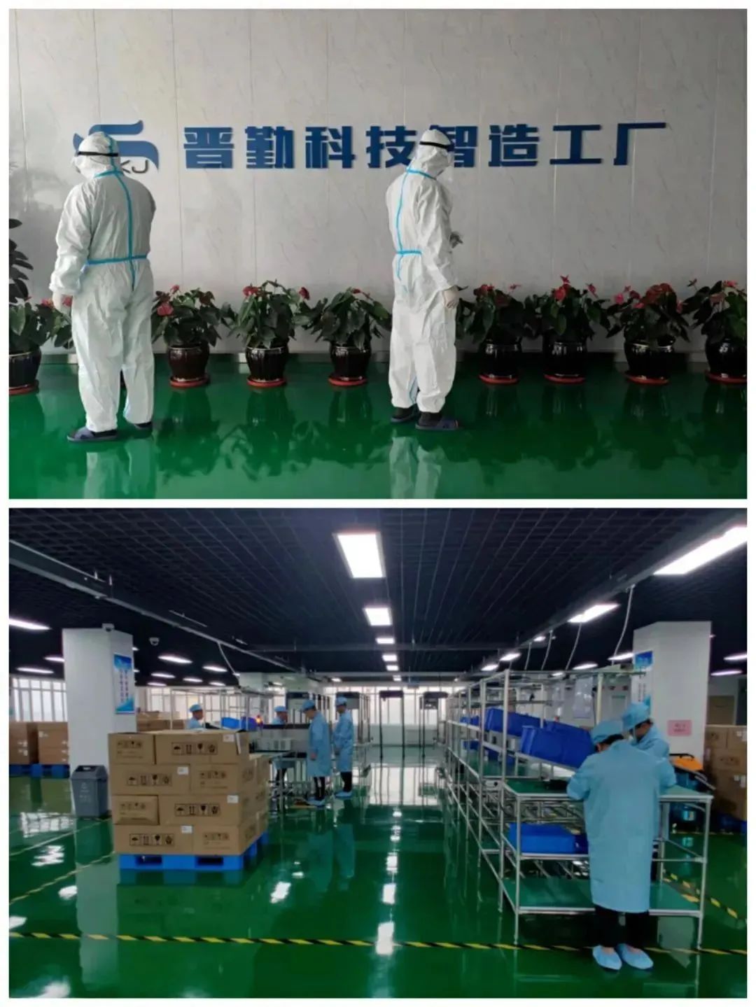 在晉勤科技智造工廠,員工們正在緊張有序的組裝生產(chǎn)智能防疫測溫設(shè)備,為我省做好疫情防控工作提供智慧檢測屏障。
