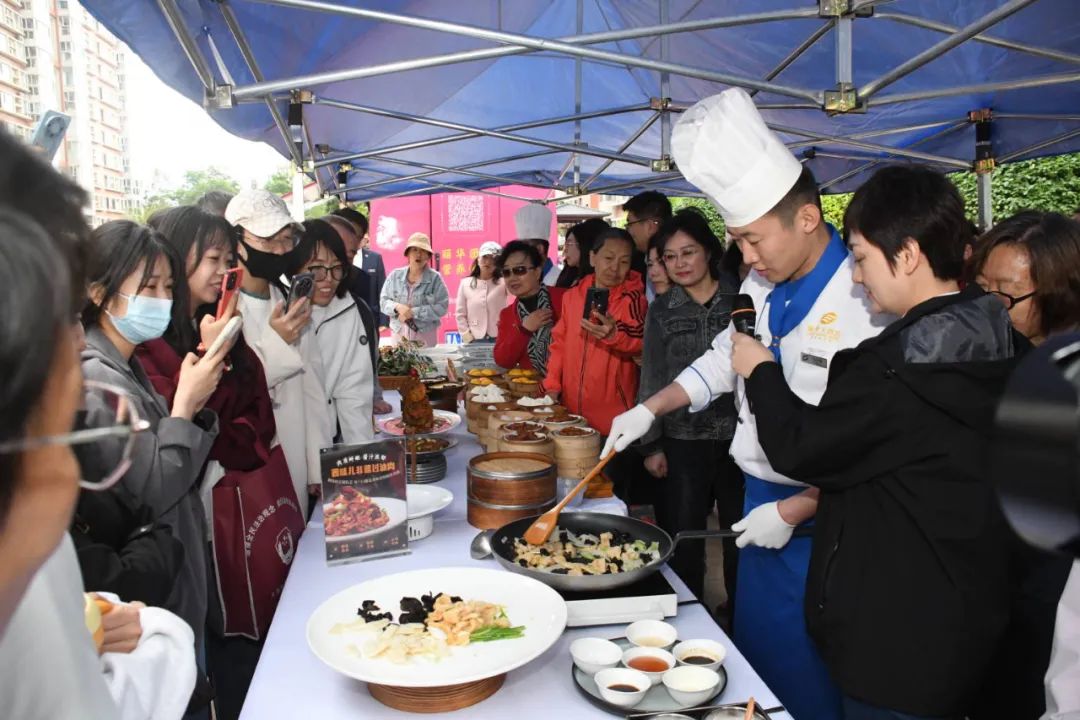 會務(wù)集團麗華大酒店廚師現(xiàn)場教學(xué)“非遺過油肉”制作。