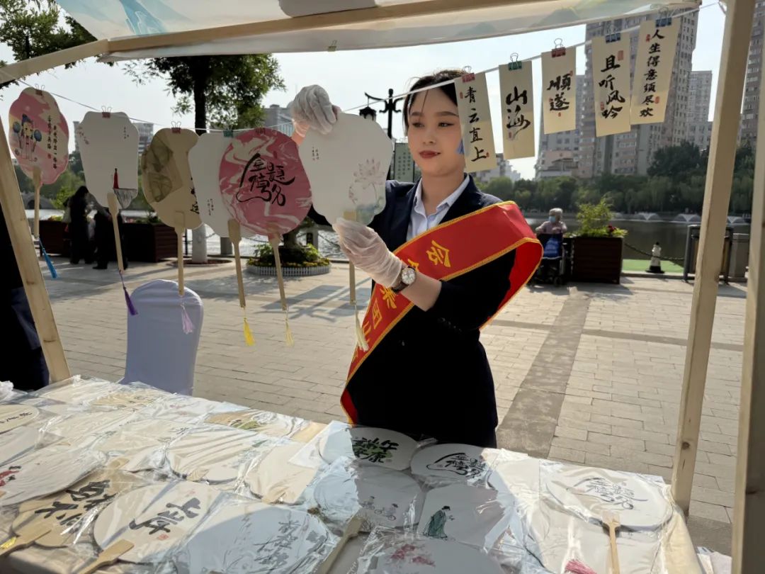 會務(wù)集團山西飯店在文瀛湖畔開展非遺漆扇活動。