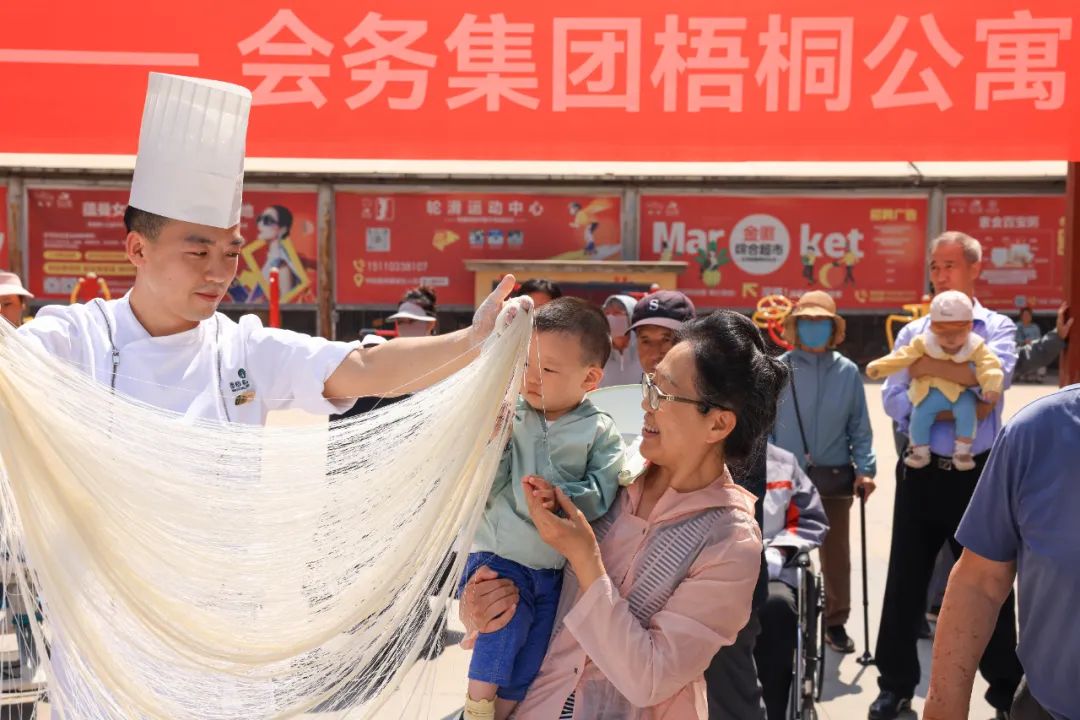 會務(wù)集團梧桐公寓廚師現(xiàn)場展示龍須拉面絕活,達16384根。