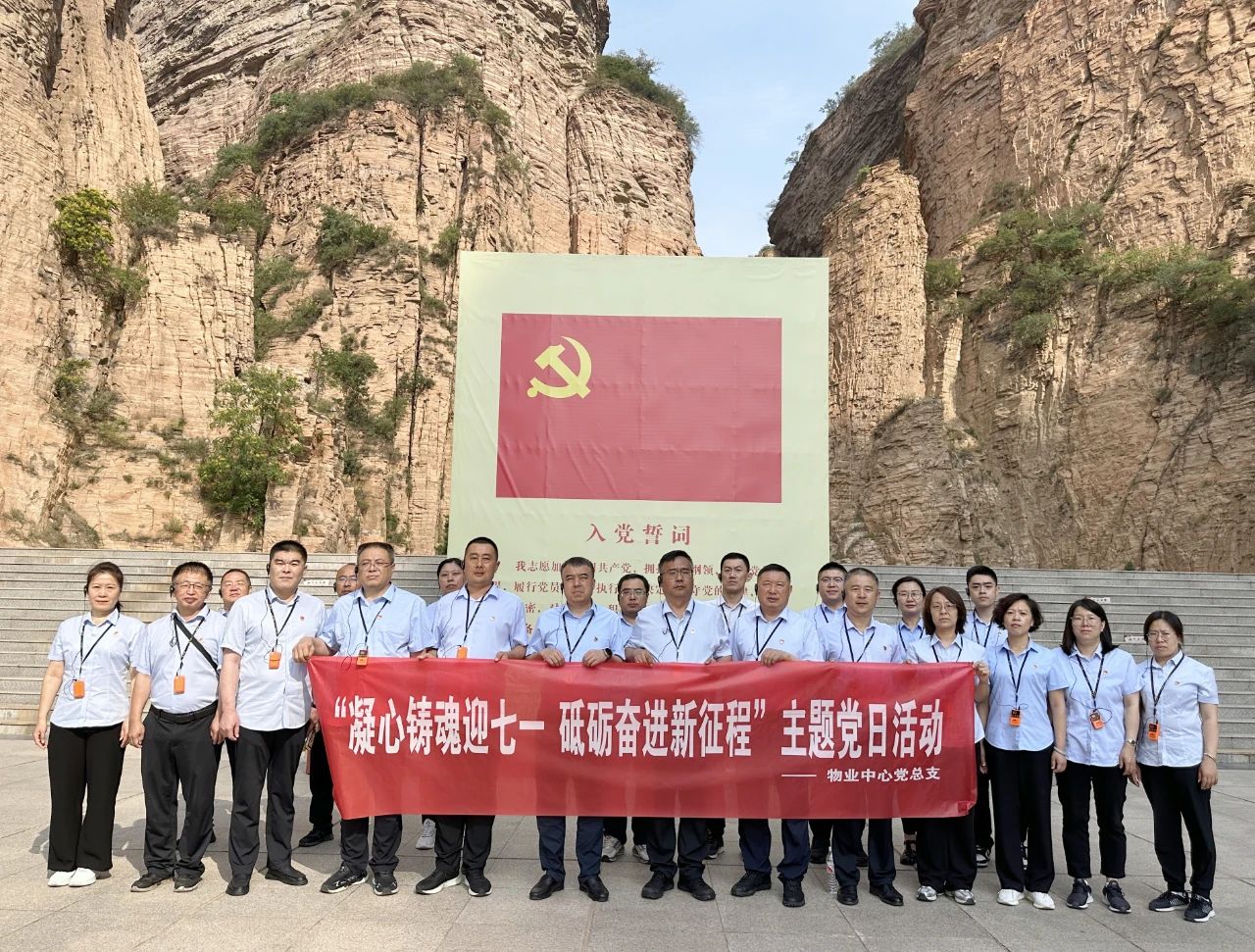 參觀結(jié)束后,黨員同志們懷著無比崇敬的心情莊嚴(yán)肅立在紅色廣場,整齊列隊,面向黨旗,舉起右拳,重溫入黨誓詞。錚錚誓言表達了作為黨員的責(zé)任與擔(dān)當(dāng),許下了對黨忠誠、永不叛黨的堅定承諾。